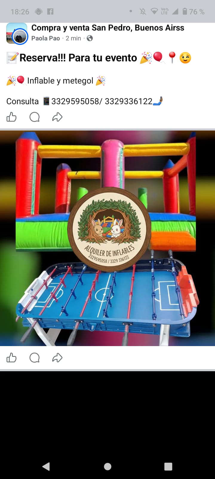 Inflables en San Pedro | Cel. 3329336122 / 3329595058 |Llevamos a todos los eventos | Inflable  4 x 3 mts y metegol | Se pueden alquilar juntos o separados | Venta online  .